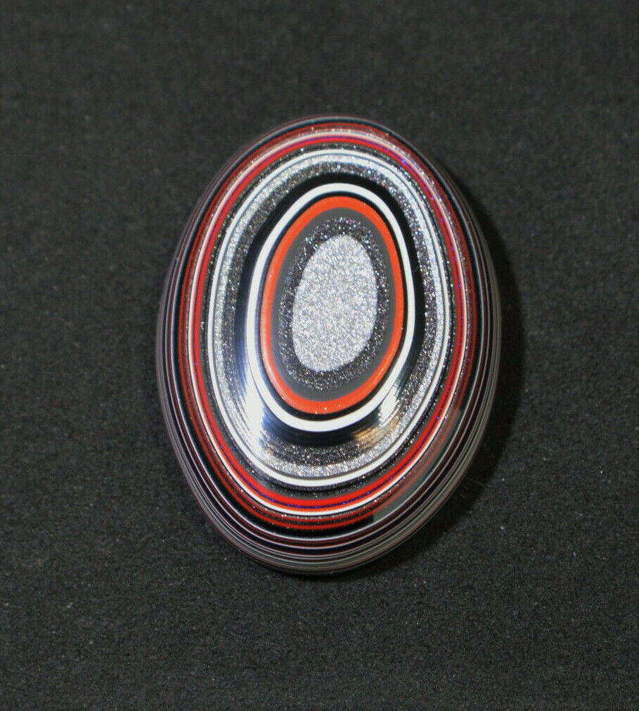 Fordite is recycled automotive paint sourced from automotive factories as well as manufacturers who paint parts for new vehicles. It forms in thin layers as car parts are painted on the racks that hold them in place. After hundreds of trips through the booth where the paint is sprayed and then baked the excess buildup is scraped off the racks. We buy this waste paint in rough chunks and recycle it into beautiful jewelry. It can take hundreds of layers of paint to make a one inch thick piece of fordite. The original fordite came from Detroit and since then it’s also synonymously known as Detroit Agate. There is very little fordite that is truly vintage. Most that’s available is modern i.e. current or within the past 15 years. We prefer modern fordite as it’s water rather than lead based paint. There are many different fordite types and some are more valuable than others. You’ll find in our fordite listings we refer to the plant location that the fordite originated from rather than listing specific auto manufacturers or vehicles.You can easily google the plant location and get a list of vehicles painted there or just ask us. We love to talk fordite so if you are looking for a specific type or color odds are we have it, please send us a message. All of our fordite is authentic.
