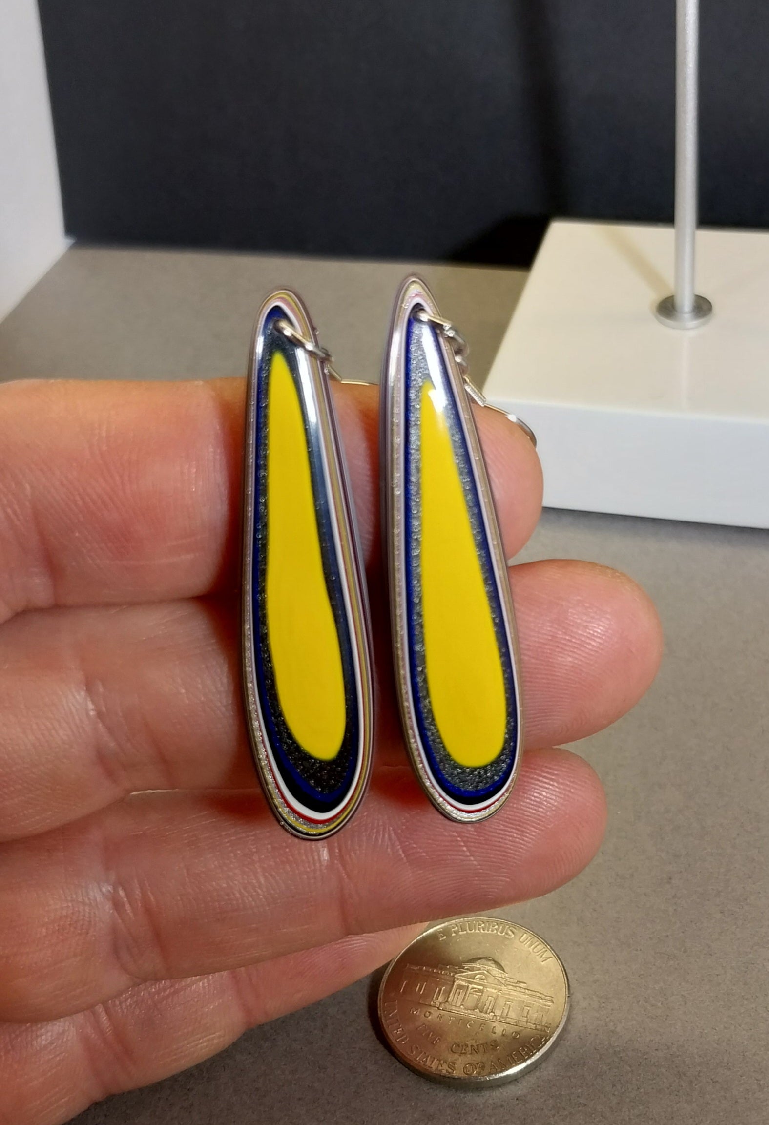 Fordite is recycled automotive paint sourced from automotive factories as well as manufacturers who paint parts for new vehicles. It forms in thin layers as car parts are painted on the racks that hold them in place. After hundreds of trips through the booth where the paint is sprayed and then baked the excess buildup is scraped off the racks. We buy this waste paint in rough chunks and recycle it into beautiful jewelry. It can take hundreds of layers of paint to make a one inch thick piece of fordite. The original fordite came from Detroit and since then it’s also synonymously known as Detroit Agate. There is very little fordite that is truly vintage. Most that’s available is modern i.e. current or within the past 15 years. We prefer modern fordite as it’s water rather than lead based paint. There are many different fordite types and some are more valuable than others. You’ll find in our fordite listings we refer to the plant location that the fordite originated from rather than listing specific auto manufacturers or vehicles.You can easily google the plant location and get a list of vehicles painted there or just ask us. We love to talk fordite so if you are looking for a specific type or color odds are we have it, please send us a message. All of our fordite is authentic.