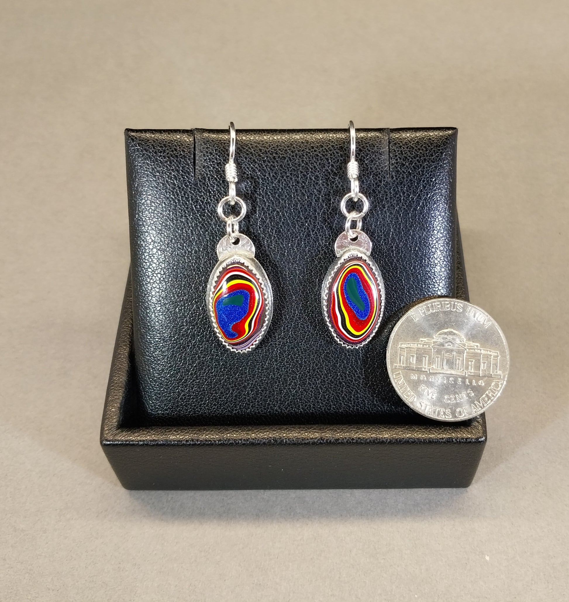 Handmade Fordite Earrings in Solid Sterling Silver Settings