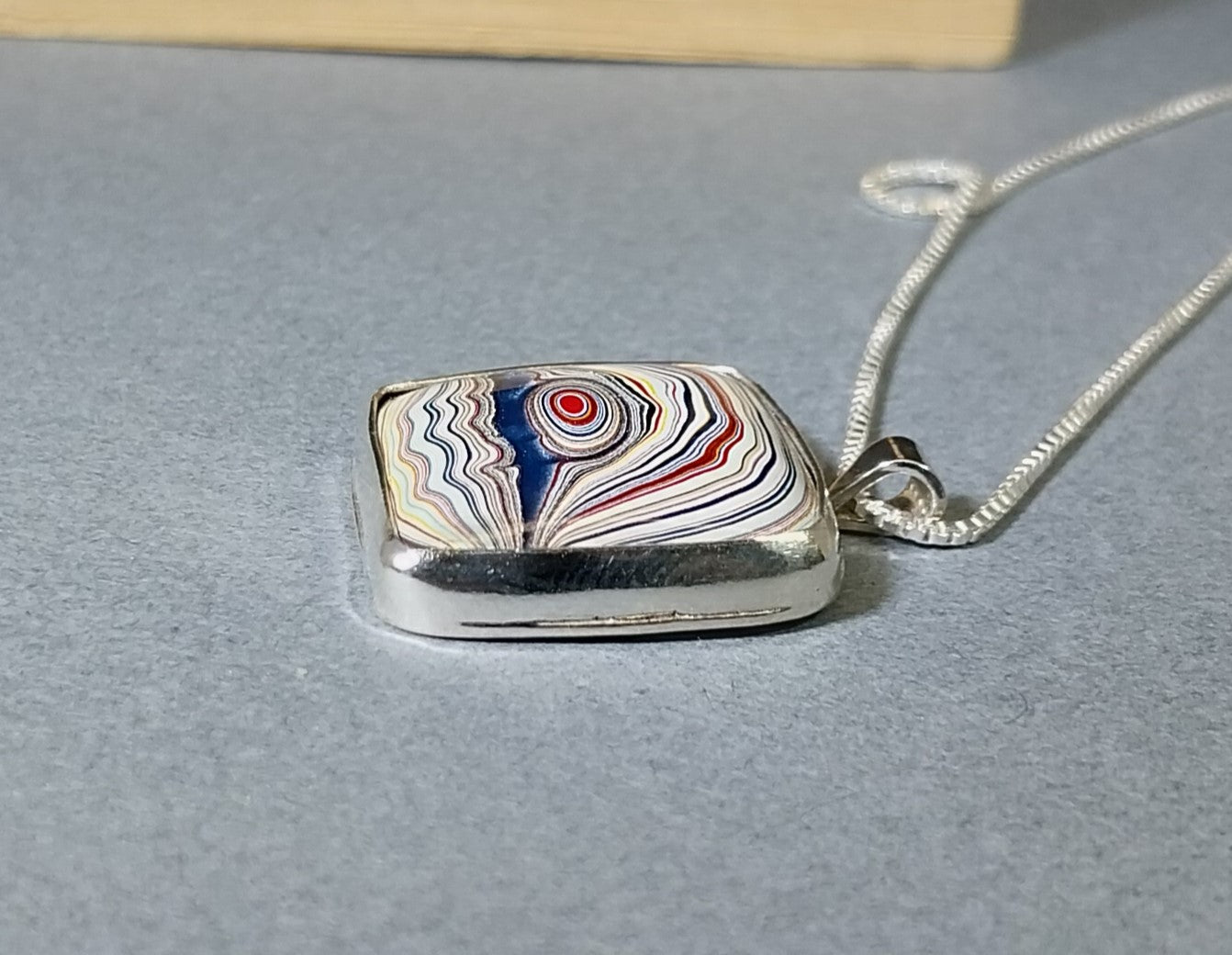 Fordite Necklace, 925 Silver, Handcrafted Fordite Silver Necklace, Artisan Necklace, Anniversary Gift, Handmade Silver Necklace