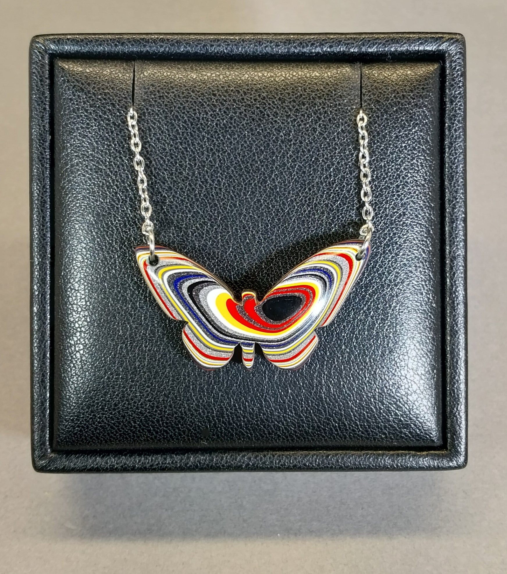 Fordite Necklace a Colorful Reversible Butterfly, W/O