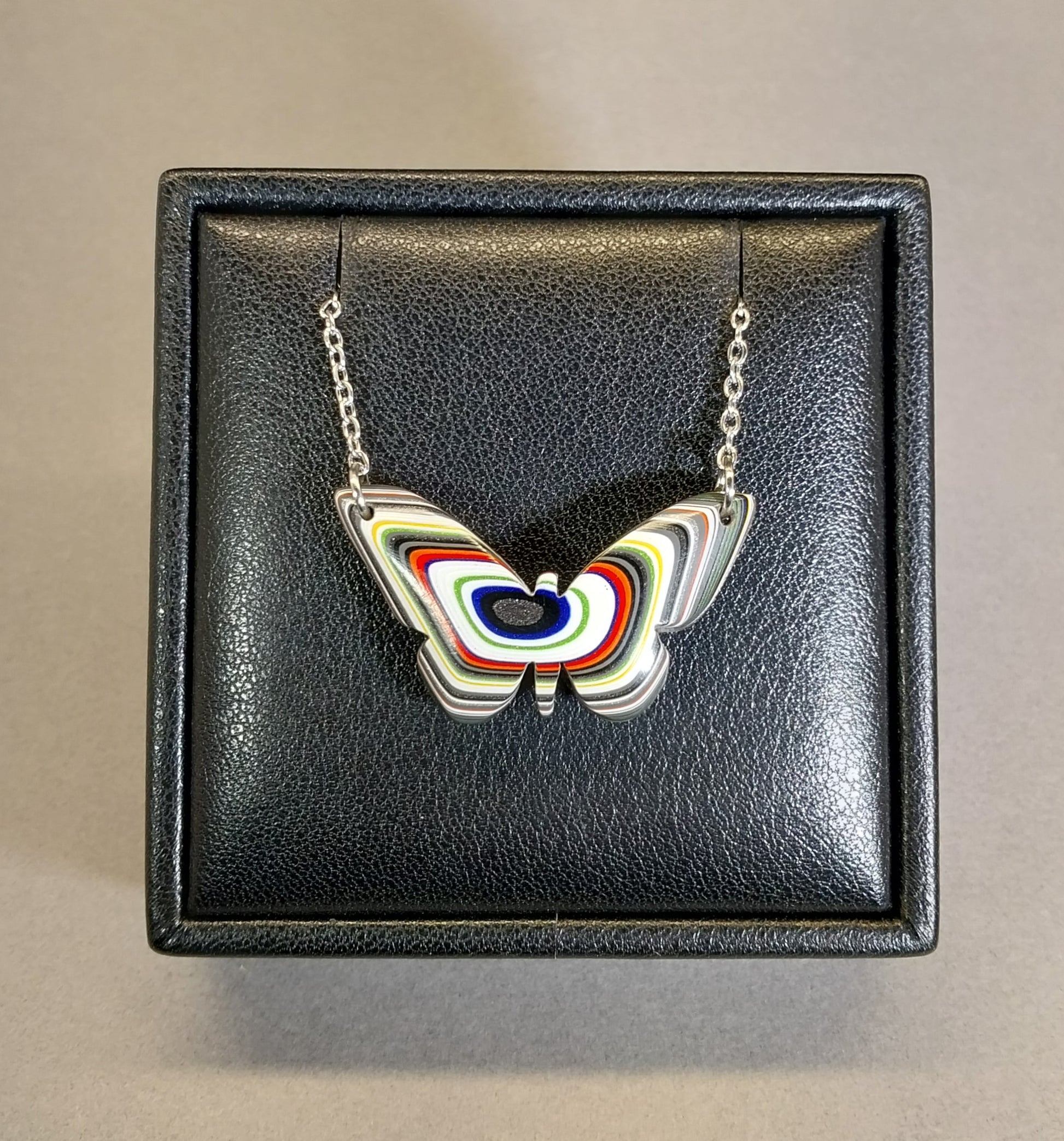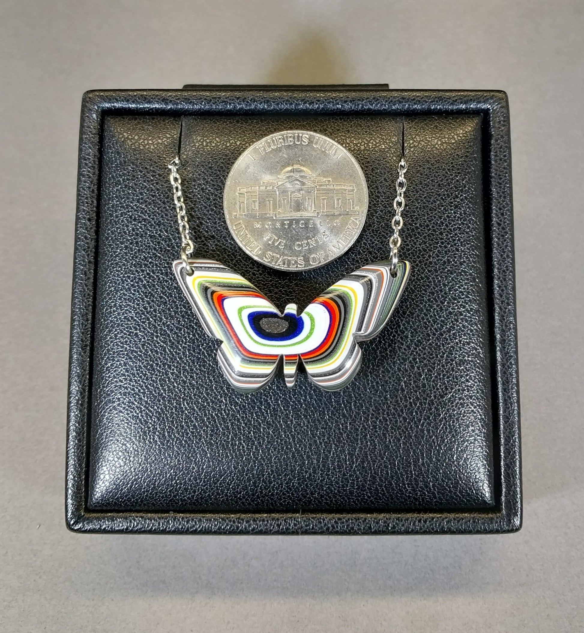 Fordite Necklace a Colorful Reversible Butterfly, W/O W204