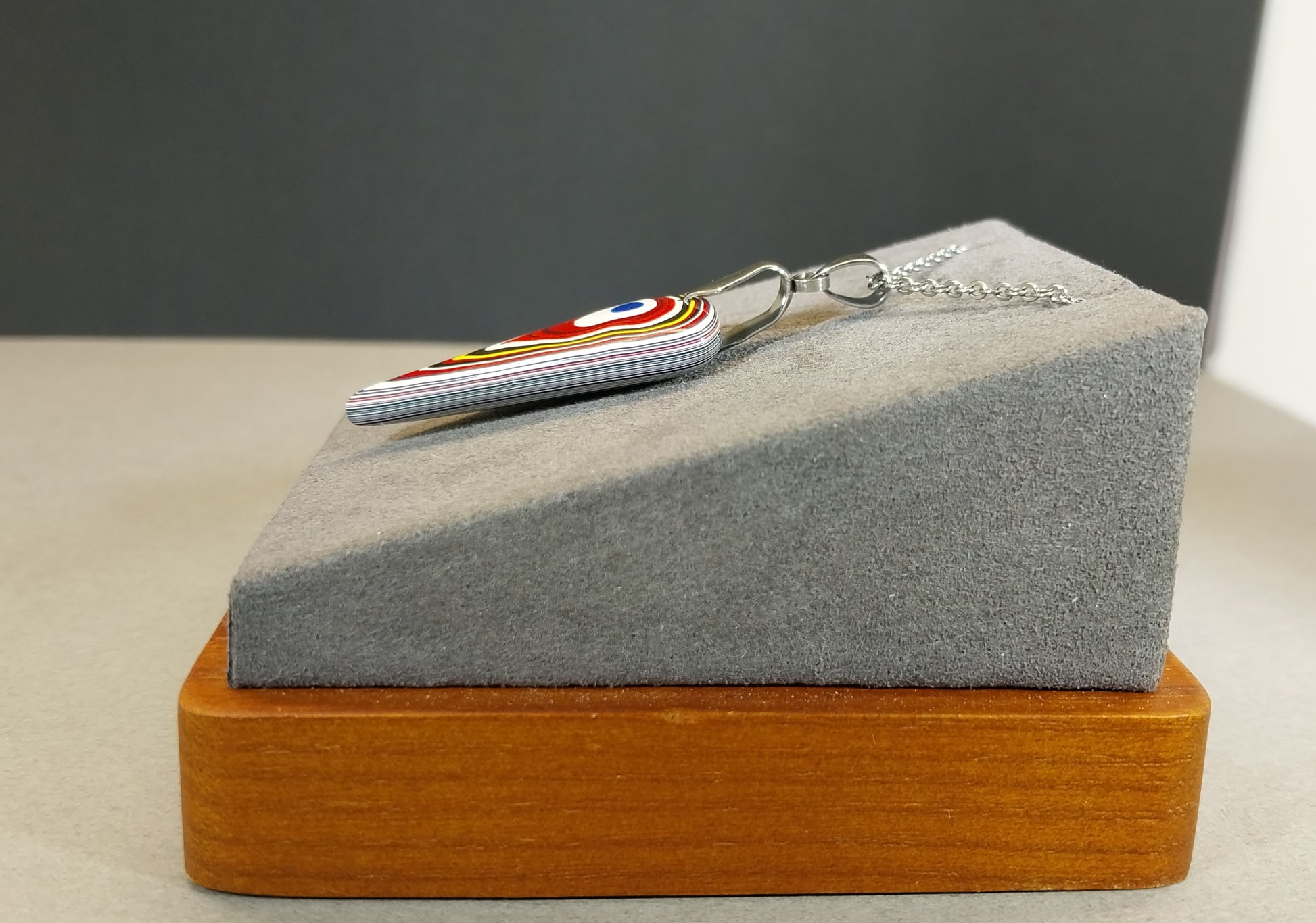 Fordite is recycled automotive paint sourced from automotive factories as well as manufacturers who paint parts for new vehicles. It forms in thin layers as car parts are painted on the racks that hold them in place. After hundreds of trips through the booth where the paint is sprayed and then baked the excess buildup is scraped off the racks. We buy this waste paint in rough chunks and recycle it into beautiful jewelry. It can take hundreds of layers of paint to make a one inch thick piece of fordite. The original fordite came from Detroit and since then it’s also synonymously known as Detroit Agate. There is very little fordite that is truly vintage. Most that’s available is modern i.e. current or within the past 15 years. We prefer modern fordite as it’s water rather than lead based paint. There are many different fordite types and some are more valuable than others. You’ll find in our fordite listings we refer to the plant location that the fordite originated from rather than listing specific auto manufacturers or vehicles.You can easily google the plant location and get a list of vehicles painted there. We love to talk fordite so if you are looking for a specific type or color odds are we have it so please send us a message. All of our fordite is authentic.