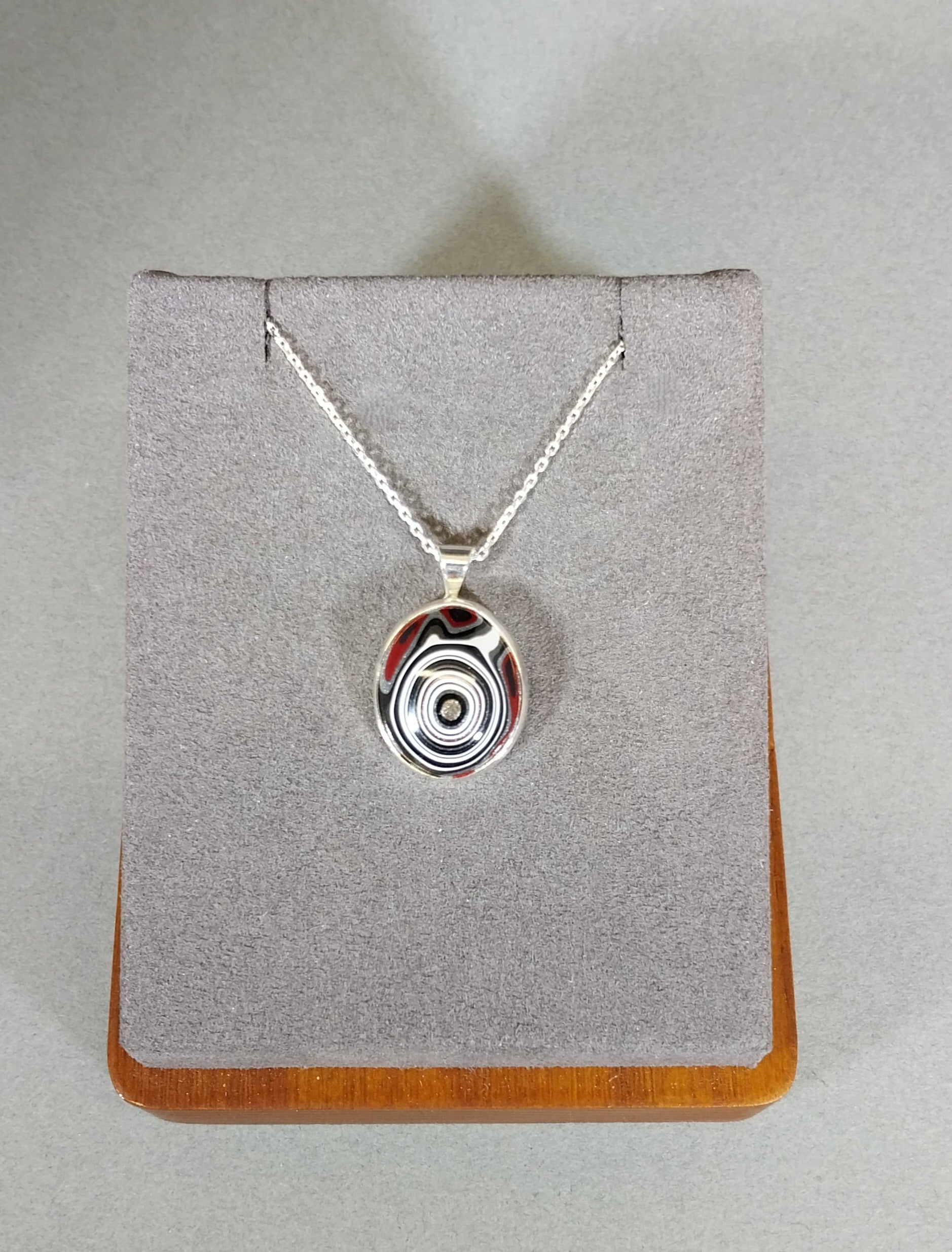 Fordite Necklace in Solid Silver Bullseye Pattern