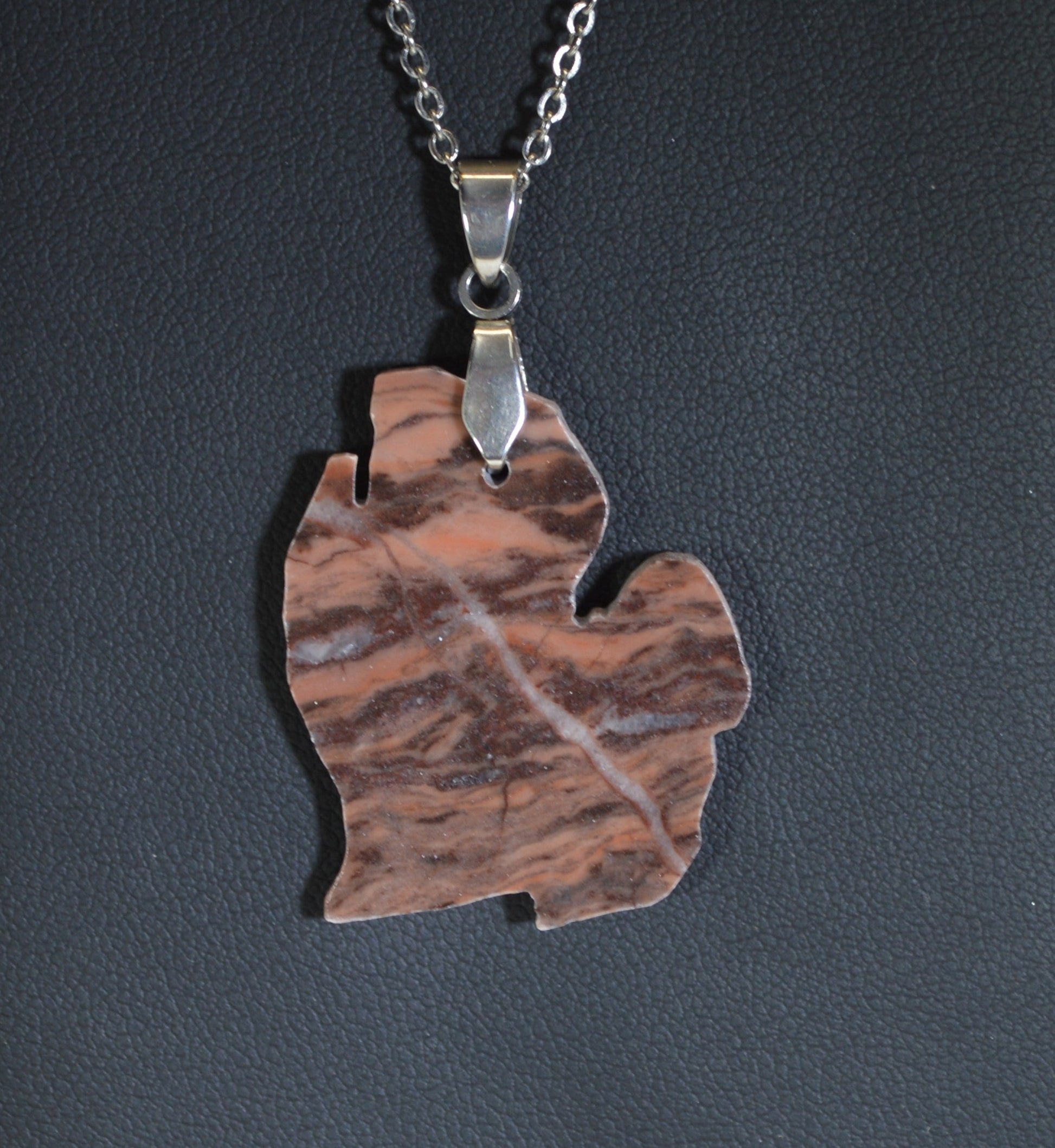 Kona Dolomite Necklace, Michigan Necklace, Michigan Stone Necklace, Michigan Shape Necklace W/O