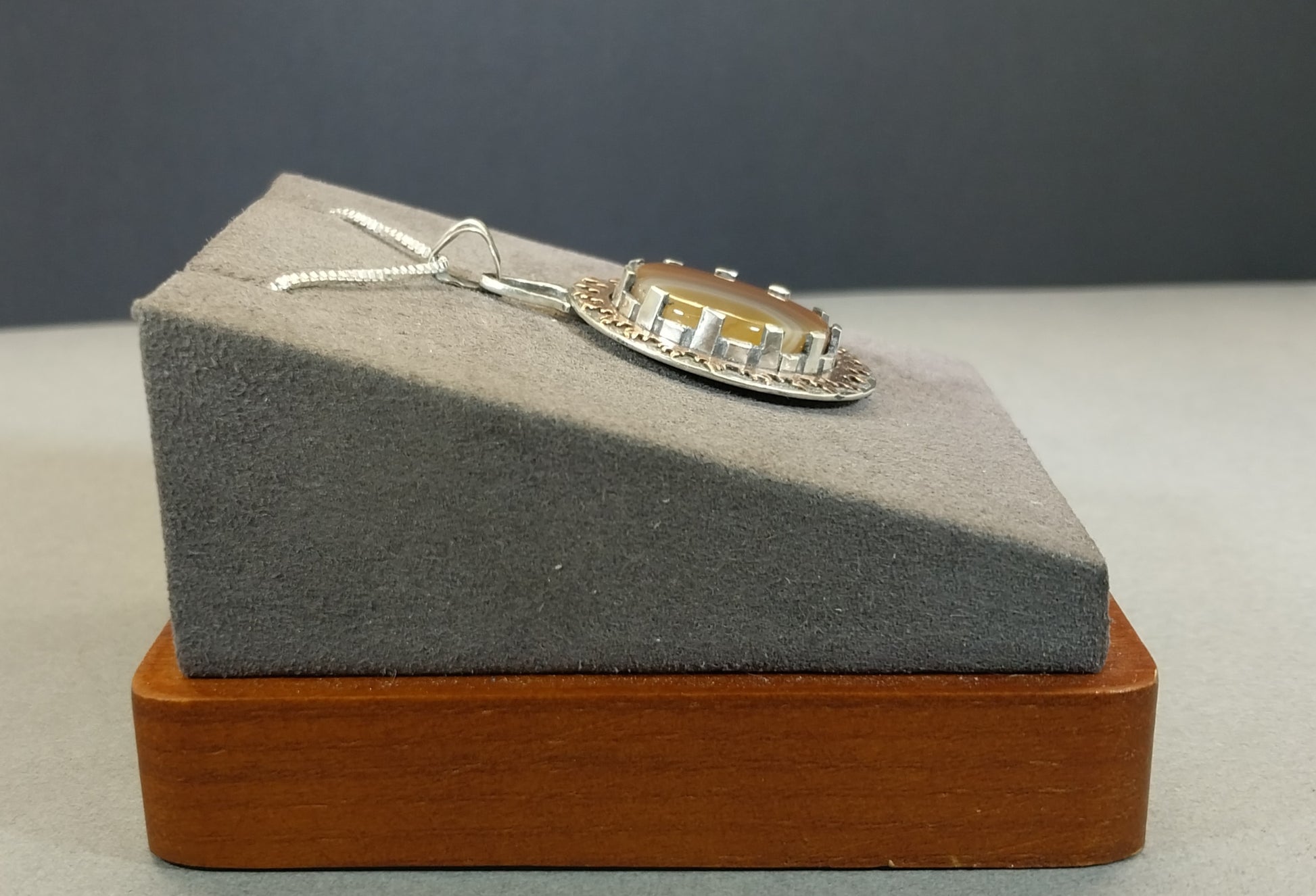Lake Superior Agate Necklace, Sun Design, Artisan Silver Jewelry, Agate Hunter Gift, Wisconsin Gift her, MN Gift for Her, Statement Pendant