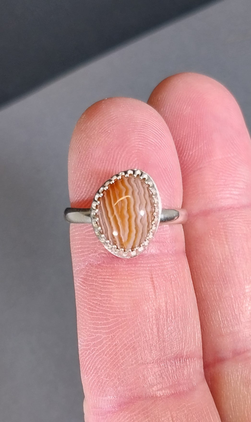 Lake Superior Agate Ring Size 7.5 Adjustbale in Solid Silver